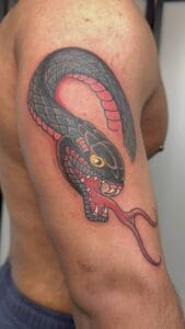 Nathan apprenticed under shop owner Jimmy, and has quickly become an accomplished artist on his own specializing in traditional styles.